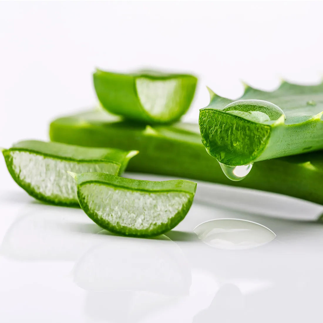 Aloe Vera contains cooling and medicinal properties. It helps keep your skin hydrated without making you feel sticky. The sweltering heat causes you to sweat which uses up most of the water in your body, and can make your skin look dull and dry. Aloe vera is sometimes described as the wonder plant. Each leaf is full of a slimy tissue that stores water, which makes the leaves thick. This slimy, water-filled tissue is the "gel" we associate with Aloe vera products.