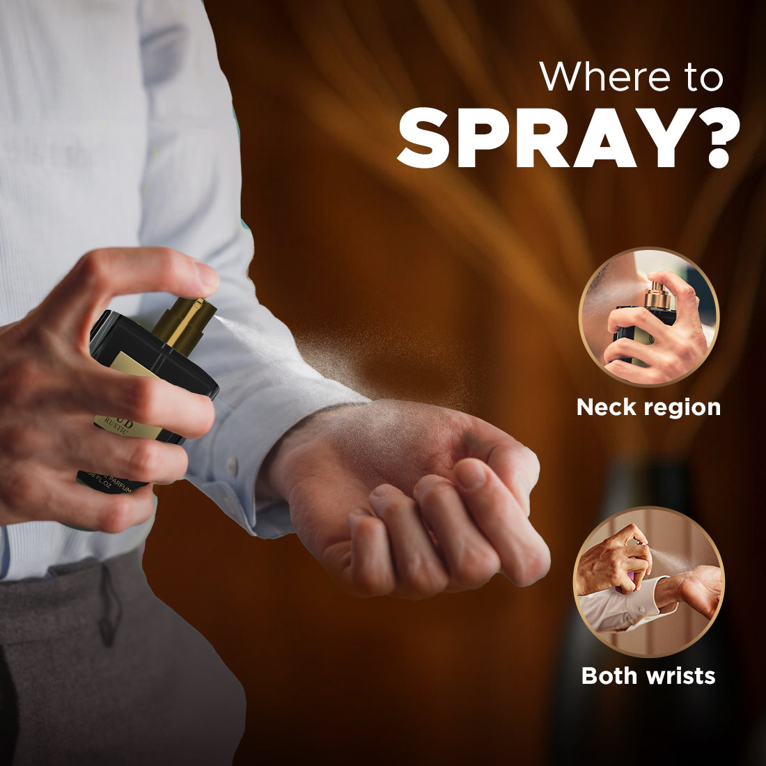 • Step 1: Spray the perfume directly on pulse points. It includes the area behind your ears